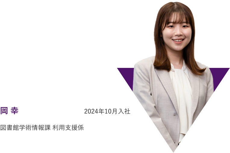 私も驚きの連続でした。私が配属された図書館(学術情報課)の業務は、非常に専門性が高いと感じています。一冊の本を選定する際にも、シラバスを参考にして大学の教育方針との整合性を精査するなど、単なる事務作業の枠に収まらない、知のインフラを支える責任の重さを感じています。一方で、前職に比べて休暇の取りやすさや、女性が当たり前に活躍し続ける風土が根付いていることにも安心感を覚えました。